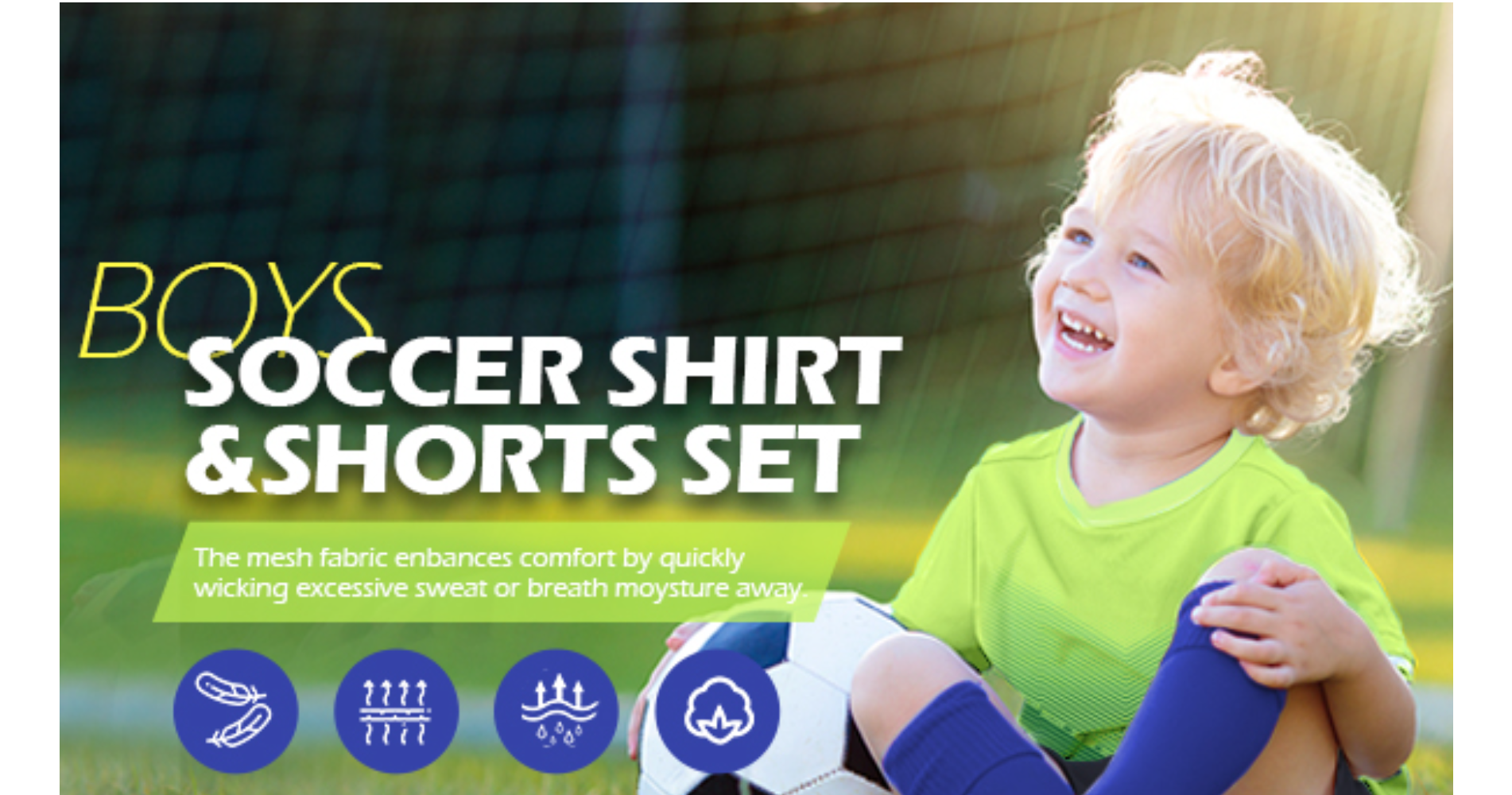 Hiheart Boys Quick Dry Short Sleeve T-shirt and Mesh Shorts Soccer Set